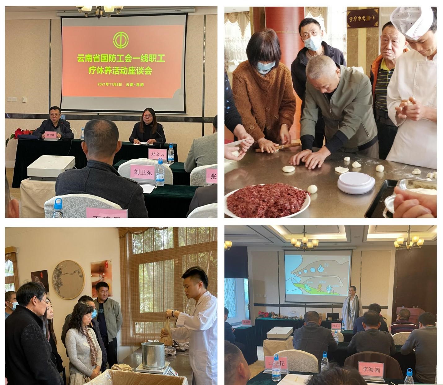在承辦單位的精心安排下,我們在美景和歡笑聲中度過輕松愉快的五天療養(yǎng)時光。組織召開了2021年云南國防工會一線職工療休養(yǎng)活動交流座談會,會上,各個單位職工作自我介紹,開展熱情交流。大家體驗了普洱茶、鮮花餅的制作,聆聽了普洱茶文化健康講座,參觀了云南白藥集團股份有限公司、尋甸縣鳳龍灣童話小鎮(zhèn)、云南陸軍講武堂、寶豐濕地公園等。