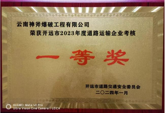 【新聞】云南神斧爆破工程有限公司榮獲開遠(yuǎn)市2023年度道路運輸企業(yè)考核一等獎