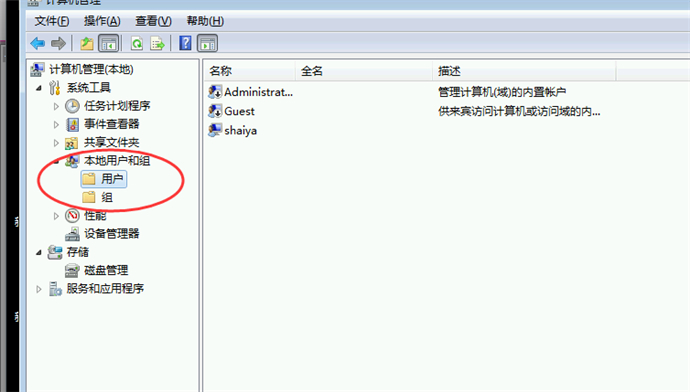 2、單擊“本地用戶和組”,雙擊“用戶”;