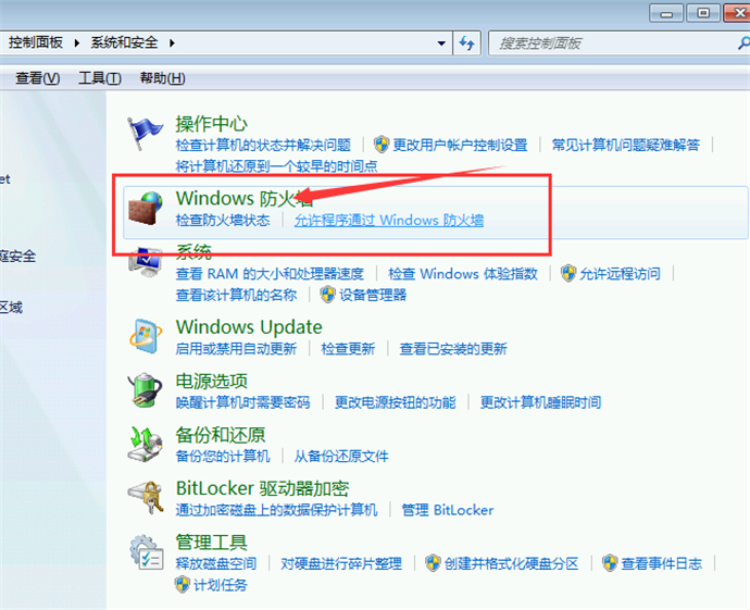 3、打開windows防火墻