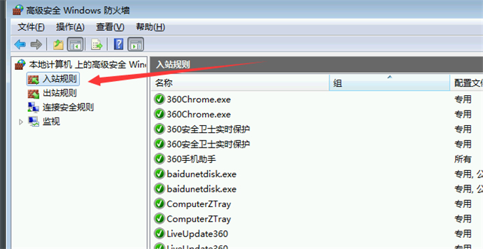 5、選擇“入站規(guī)則”;