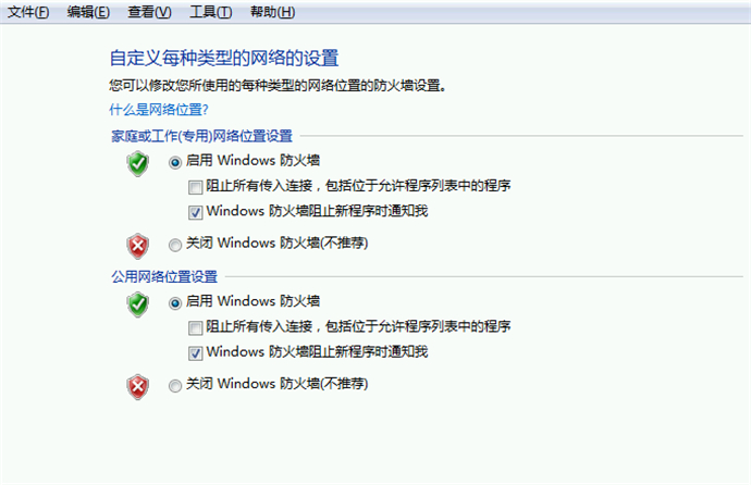 13、將“啟用windows防火墻”、“windows防火墻阻止新程序時通知我”兩個選擇框選中后,單擊“確定”后關(guān)閉;